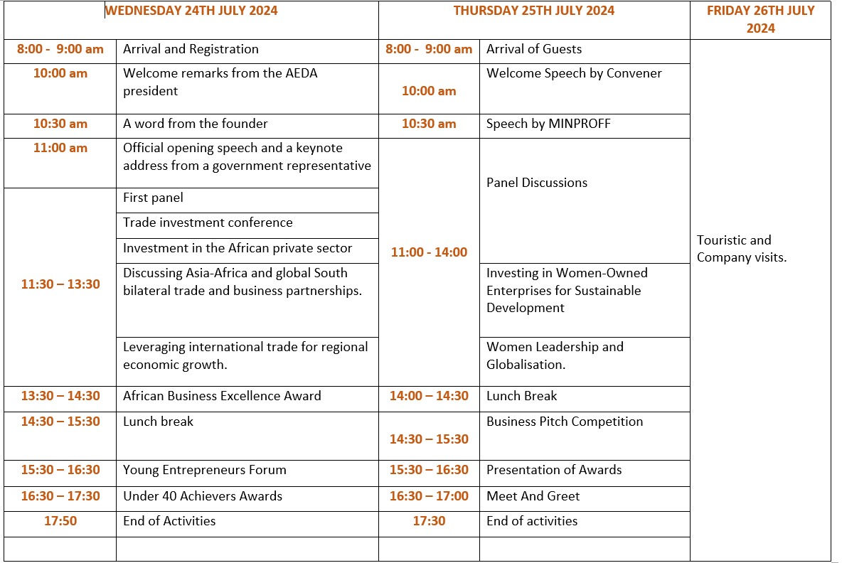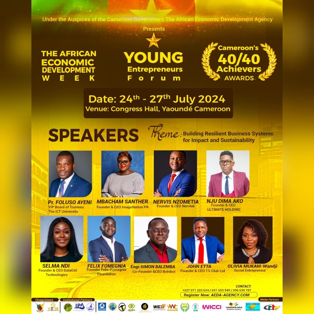 According to the World Bank, Sub-Saharan Africa’s economic growth dropped to 3.6% in 2022 from 4.1% in 2021 and is expected to dip to 3.1% in 2023. Global economic sluggishness, lingering inflation, and tough financial conditions with high debt contribute to this decline. In a bid therefore to accelerate socio-economic development in the African continent, the African Economic Development Agency in conjunction with the Cameroon Government is pleased to organize the first AFRICAN ECONOMIC DEVELOPMENT WEEK which will run from the 24th to the 27th of July 2024 in Yaoundé, Cameroon, under the theme: Restoring, Reforming and Ensuring Resilient Economic Policies for Shared Prosperity. The 3-day event which will bring together International and African economic experts, thought Leaders and Business Leaders will have the following lineup of activities.